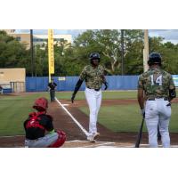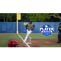 Biloxi Shuckers shortstop Jesús Made heads to first