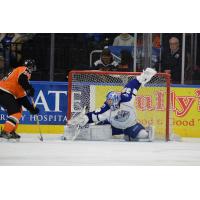Lehigh Valley Phantoms Goaltender Anthony Stolarz Stops the Onrushing Syracuse Crunch