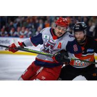 Indy Fuel defenseman Christopher Cameron (left) vs. the Bloomington Bison