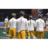 Randy Staats of the Georgia Swarm pushes against the Saskatchewan Rush