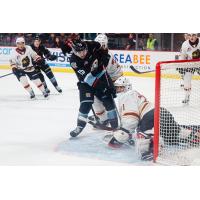Vancouver Giants goaltender Kelton Pyne and centre Brett Olson vs. the Wenatchee Wild