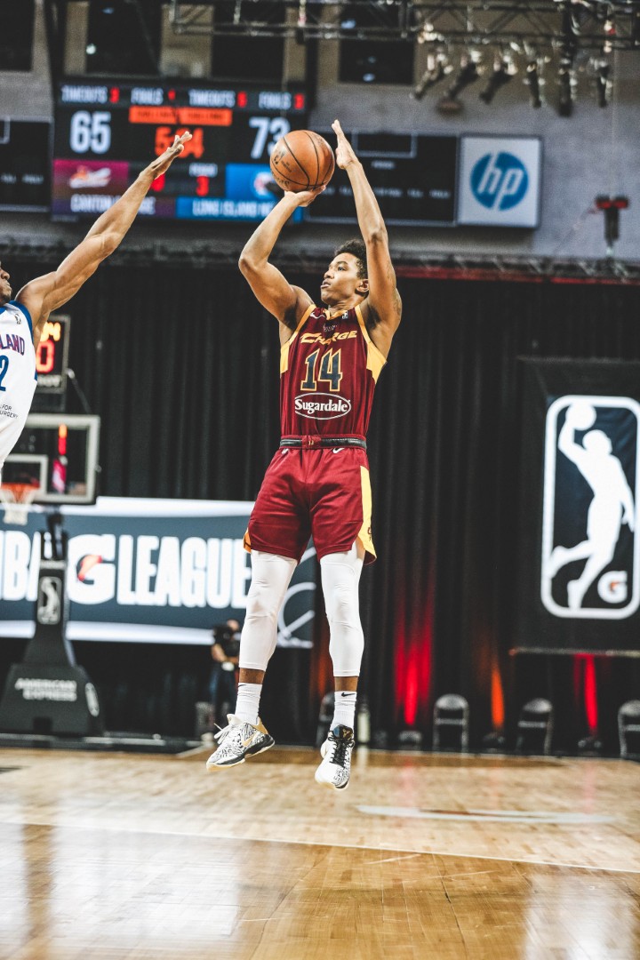 Canton Charge forward Lamar Stevens takes a shot against the Long Island Nets