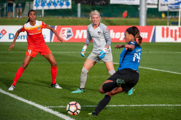 The Blues struck first in the 9^th minute after midfielder Desiree Scott sent a perfect cross into the box to Kelly who headed it in. It's Kelly's fifth goal of the season, tying for second with forward Shea Groom. Fc Kansas City almost doubled their lead in the 18^th minute after forward Sydney Leroux beat Dash goalkeeper Jane Campbell, but the rookie goalkeeper came up with a save diving save to push it out for a corner. ... Full Story