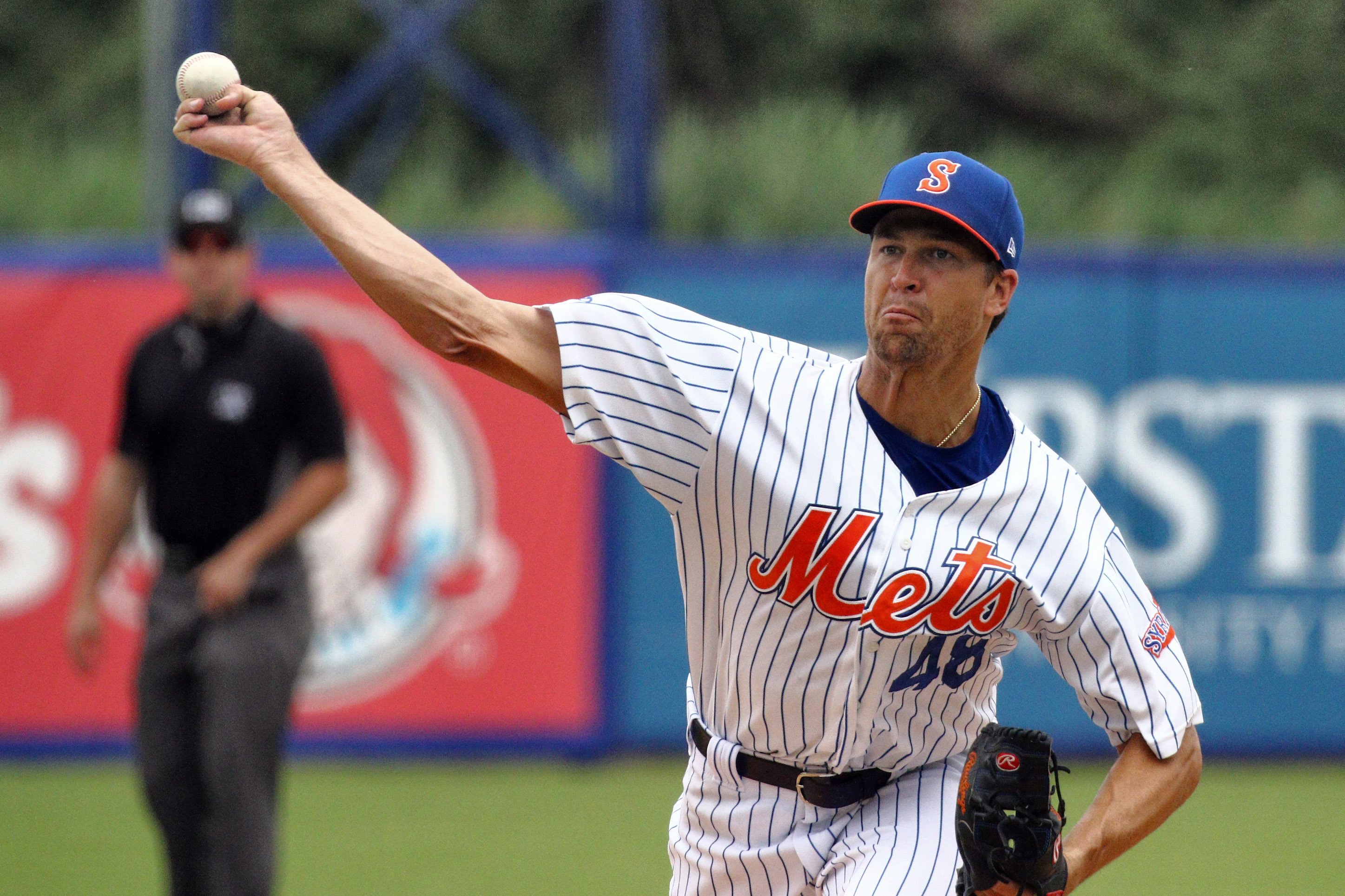 Jacob deGrom struck out six batters in four innings pitched on Wednesday afternoon for Syracuse.