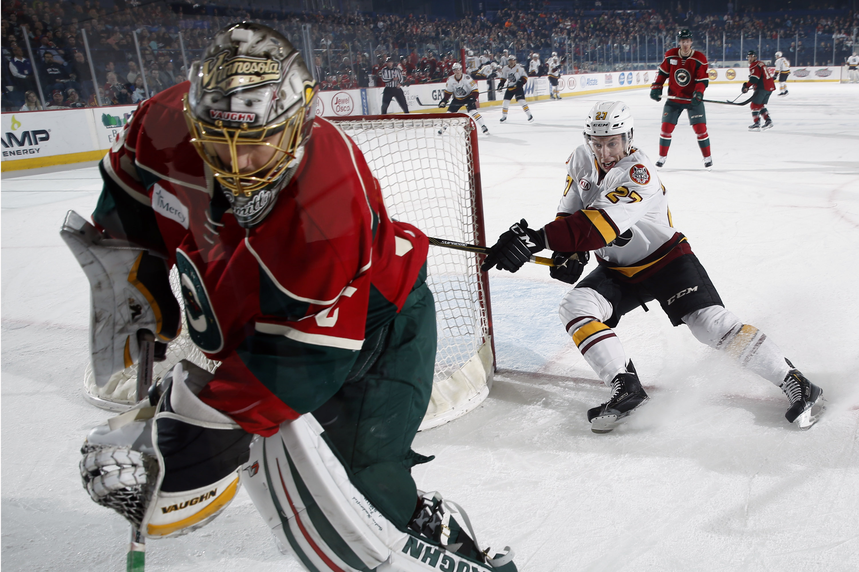 ROSEMONT, Ill. - Goaltender Pheonix Copley rejected all 34 shots he faced and the Chicago Wolves scored three times in the third period to earn a 3-0 victory over the Iowa Wild on Friday night at Allstate Arena. Center Pat Cannone and defenseman Andre Benoit, the Wolves' pair of American Hockey League All-Star selections, scored midway through the third period and right wing Eriah Hayes added an insurance tally to pace Chic... Full Story