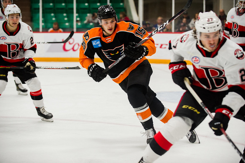 Belleville, Ontario - The Lehigh Valley Phantoms received all of their scoring from rookies and second-year pros with Pascal Laberge (6th), Maksim Sushko (5th) and Connor Bunnaman (2nd) all lighting the lamp. But the host Belleville Senators overcame an early 2-0 deficit to post a 5-3 victory over the Phantoms on Saturday night at CAA Arena.