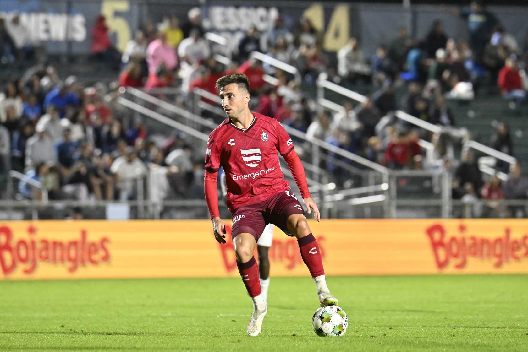 Louis Perez controls the ball during the second half of the match against Rhode Island FC.