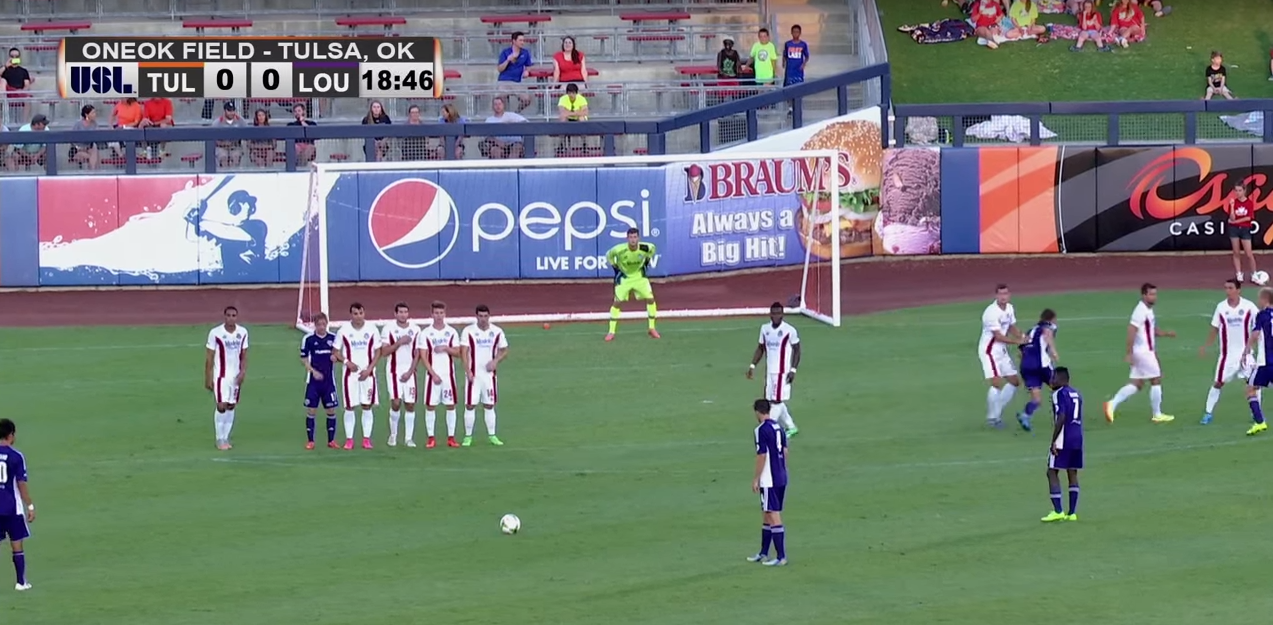 Louisville City FC's Aodhan Quinn Line up for his Free Kick