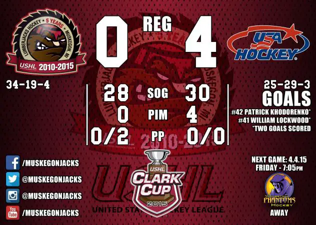 MUSKEGON, Michigan (April 3rd) - The Muskegon Lumberjacks looked to build off an impressive month of March with a fast start to April in the 2014-15 regular season home finale against the USNTDP Under-17 Team. The first two periods saw a 1-0 decision in favor of the visitors when the Under-17's used a three-goal third period to steer further ahead and eventually come away with a 4-0 shutout victory on the road that included fo...