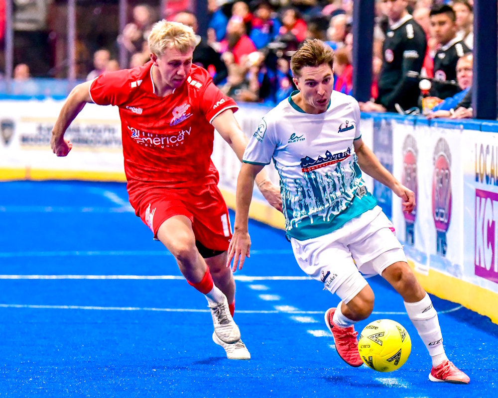 St. Louis Ambush get to the ball vs. the Kansas City Comets