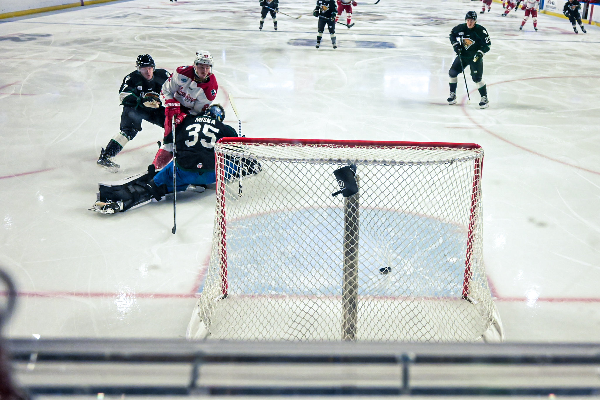 Utah scored back-to-back goals, opening the second period with Cy LeClerc's first of the season to give Utah a 2-1 lead. Forty seconds later Colton Hargrove scored his 21st of the season to tie the game at 2-2. Before the period ended, the Americans regained the lead when Michael Gildon took a pass from Ty Prefontaine and knocked it into the Utah net for his 19th goal of the season, giving the Americans a 3-2 lead entering the third period.