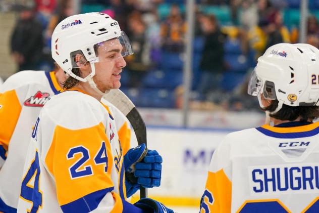 ![]() Saskatoon Blades' Tanner Molendyk on game night |