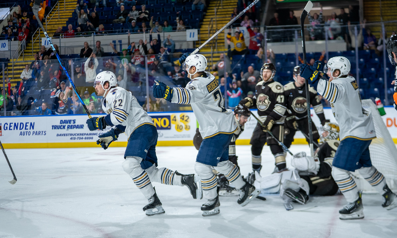 After both clubs traded chances in 3-on-3 overtime, Springfield got into hot water when a penalty gave the Bears a 4-on-3 advantage in the final minute of the extra frame. With time dwindling, former T-Bird Calle Rosen slipped into a quiet area to the right of the goal crease, one-timing an Andrew Cristall pass behind Zherenko and giving Hershey the win in extra time.