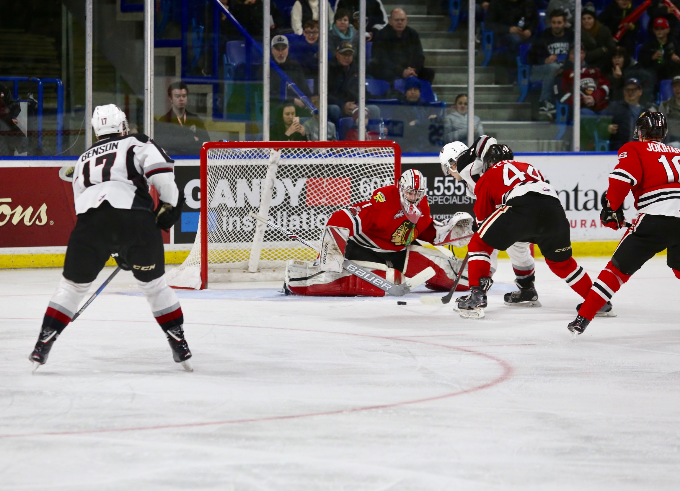 Despite some late pressure with their net empty, the Giants were unable to solve Farkas. Mason Mannek then removed all hope of a Giants comeback at 19:07 when he stuffed his seventh goal of the season into the empty net from the right-wing boards.