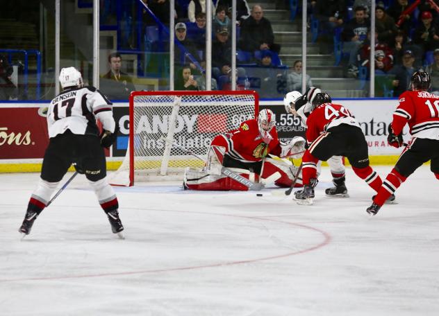 At the other side of the ice, Portland finally solved David Tendeck at 13:22 when Ty Kolle backhanded a Dennis Cholowski rebound home for his fifth goal of the season from the slot area. A shift later, Tendeck kept the G-Men within reach when he made a point-blank save off Joachim Blichfeld.
