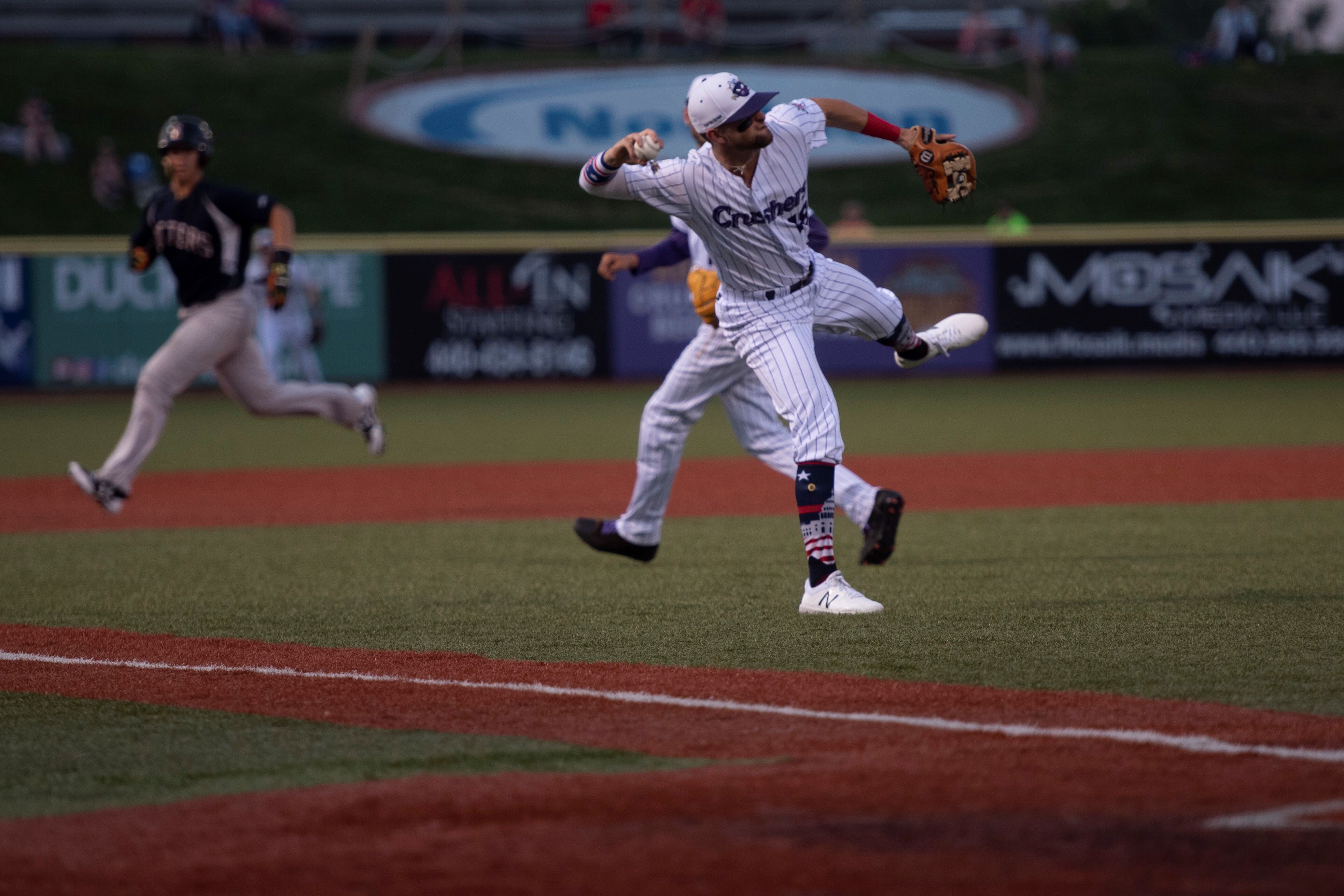 ![]() Lake Erie Crushers third baseman Dane Hutcheon |