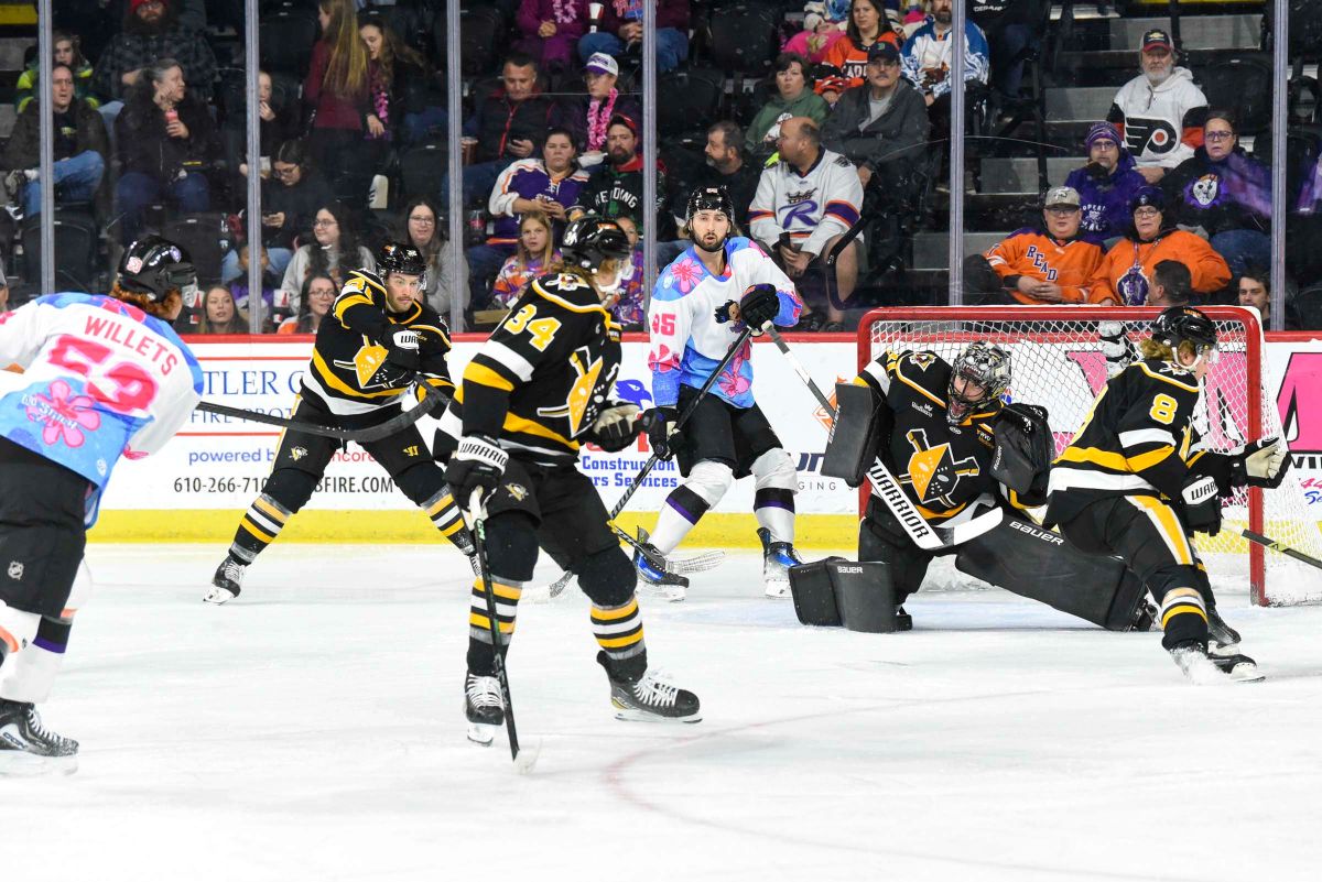 Neither team was able to find the twine in the opening 32 minutes of play. Wheeling finally broke the scoreless deadlock with 7:48 left in the second period. Tanner Andrew cruised across the offensive zone and pounded a low shot on goal from the right circle. Keith Petruzzelli made the save, but the rebound kicked out to Jack Works, who deposited the loose change. The Nailers added to their lead 4:40 later. Brayden Edwards carried the puck deep on the right side of the ice, then centered a pass to Connor Lockhart, who slammed a shot into the wide-open left side of the cage.