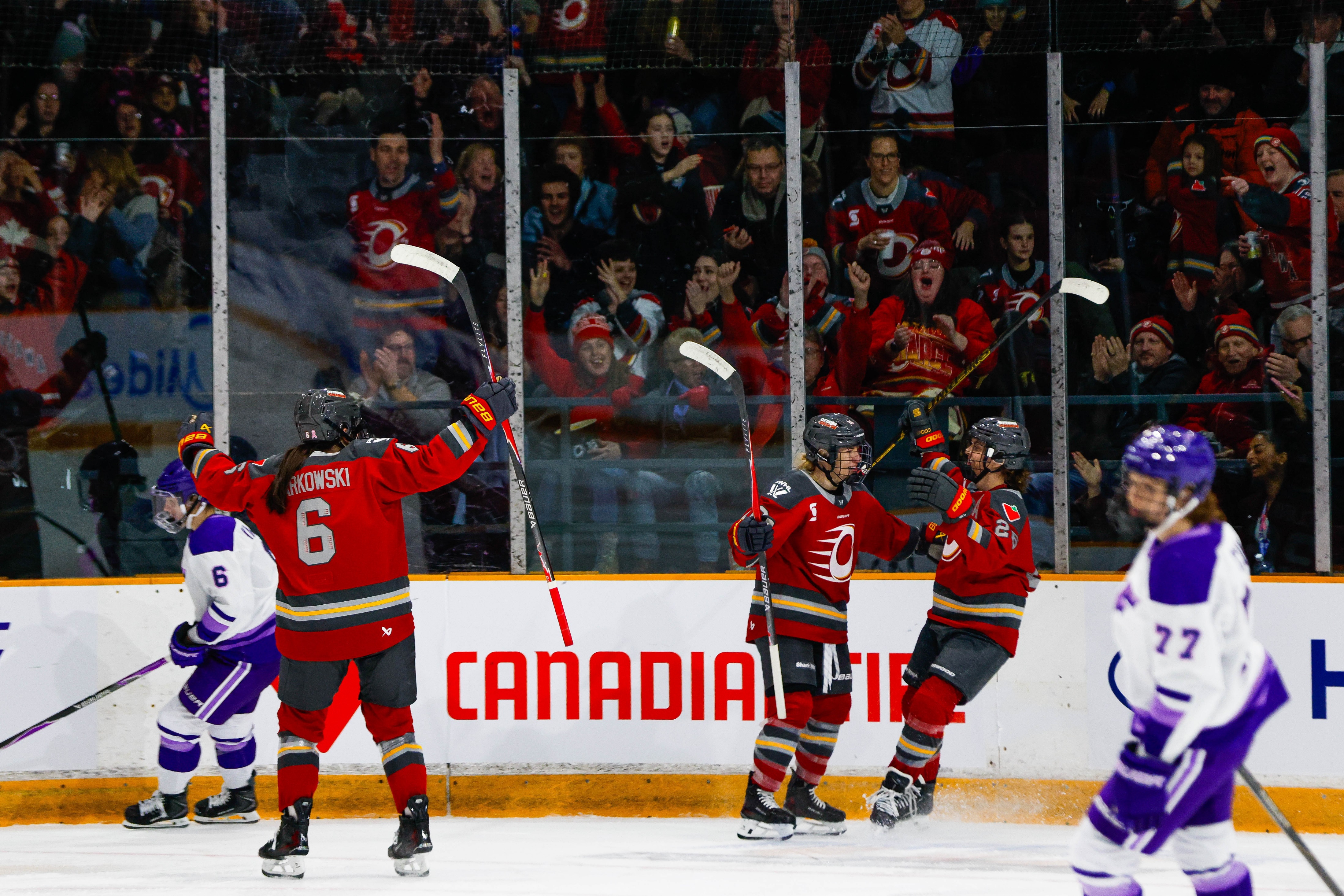 ![]() Ottawa Charge celebrate a goal against the Minnesota Frost |