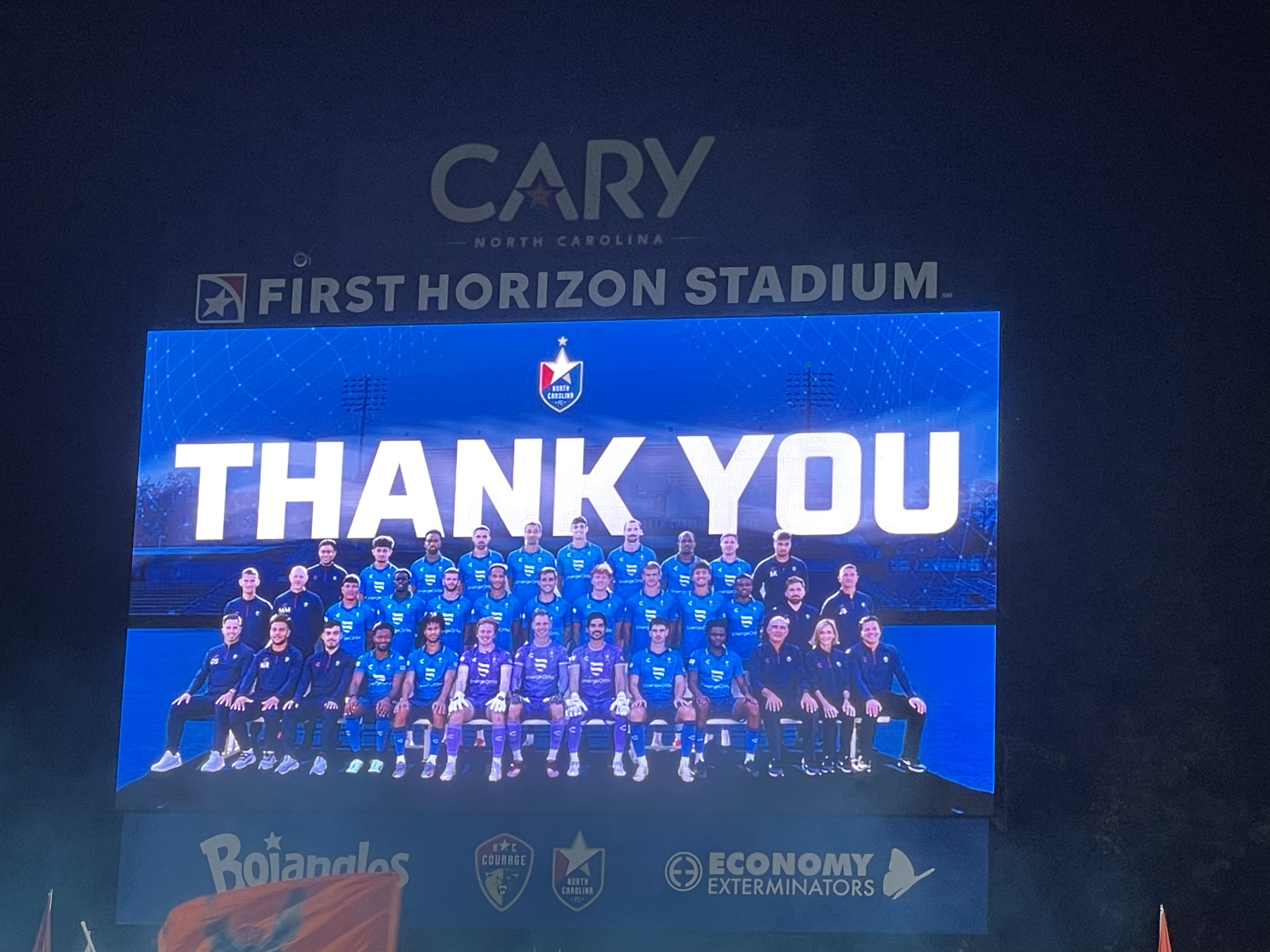 After the game ended, the video board displayed a North Carolina FC team photo with the words "THANK YOU" above it.