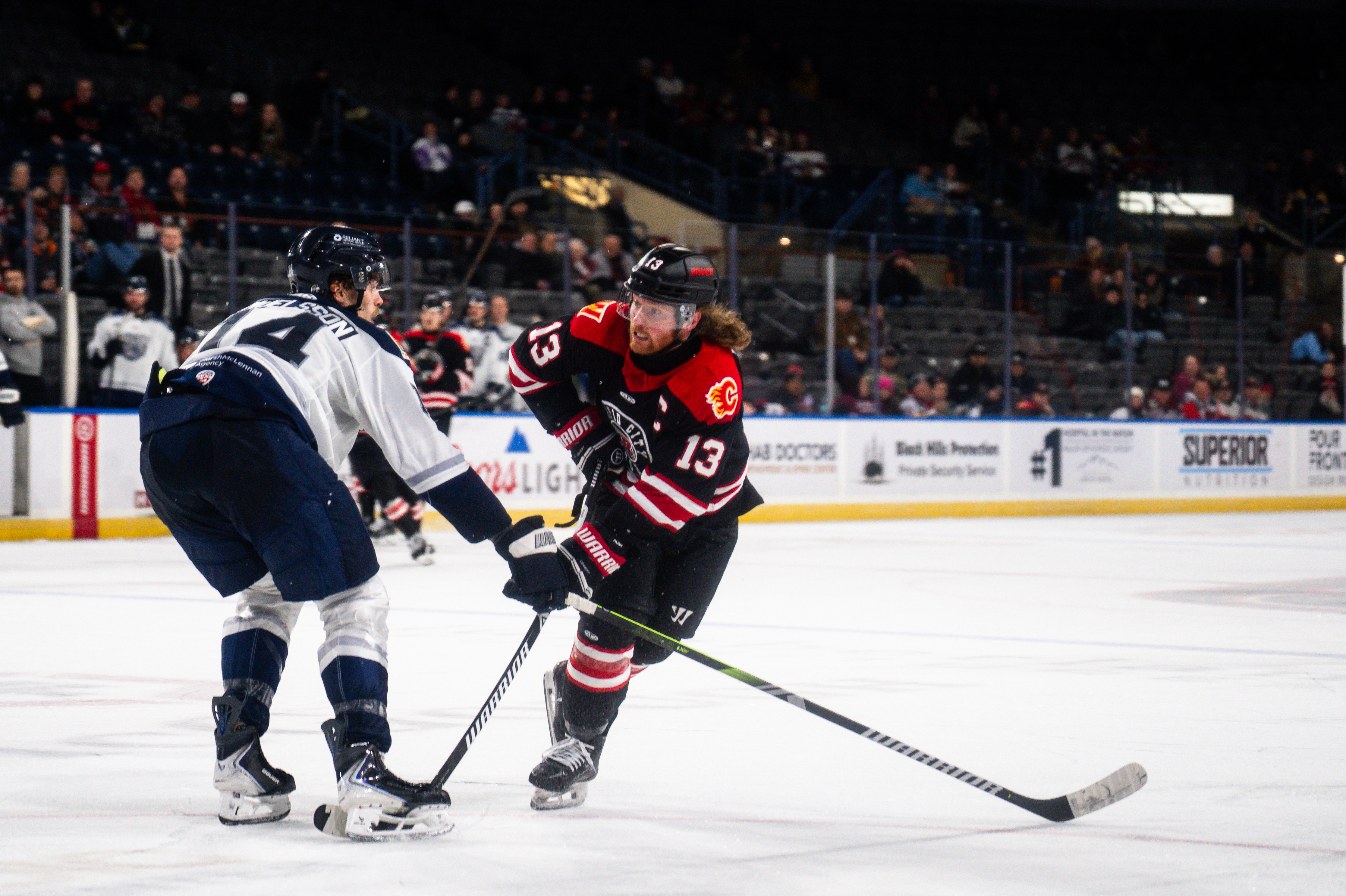 ![]() Rapid City Rush forward Ryan Wagner (right) vs. the Worcester Railers |