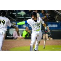 ![]() Columbia Fireflies' Blake Mitchell congratulated by Lizandro Rodriguez |