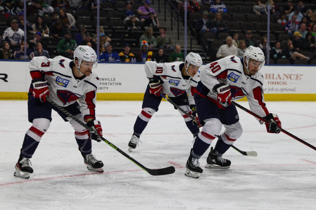South Carolina Stingrays' Matt Anderson, Lawton Courtnall and Alexandre Fortin on game night