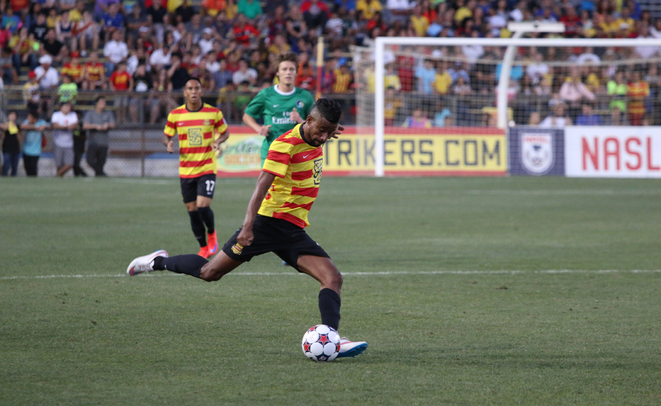The Strikers came closest to tying the game in the 75th minute when Leo Moura's free kick struck the side netting.