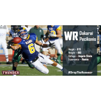 Wide receiver Dakarai Pecikonis (6-0, 180, Angelo State) will enter his first season of AFL play with the Thunder in 2016. The career leader in receptions (189) and receiving yards (2,831) for Angelo State University, Pecikonis was a four year starter for the Rams from 2009 to 2014 (did not play in 2011, 2013). Dakarai led all Rams receivers with 56 catches during his senior season in 2014, and averaged over 60 yards per game.