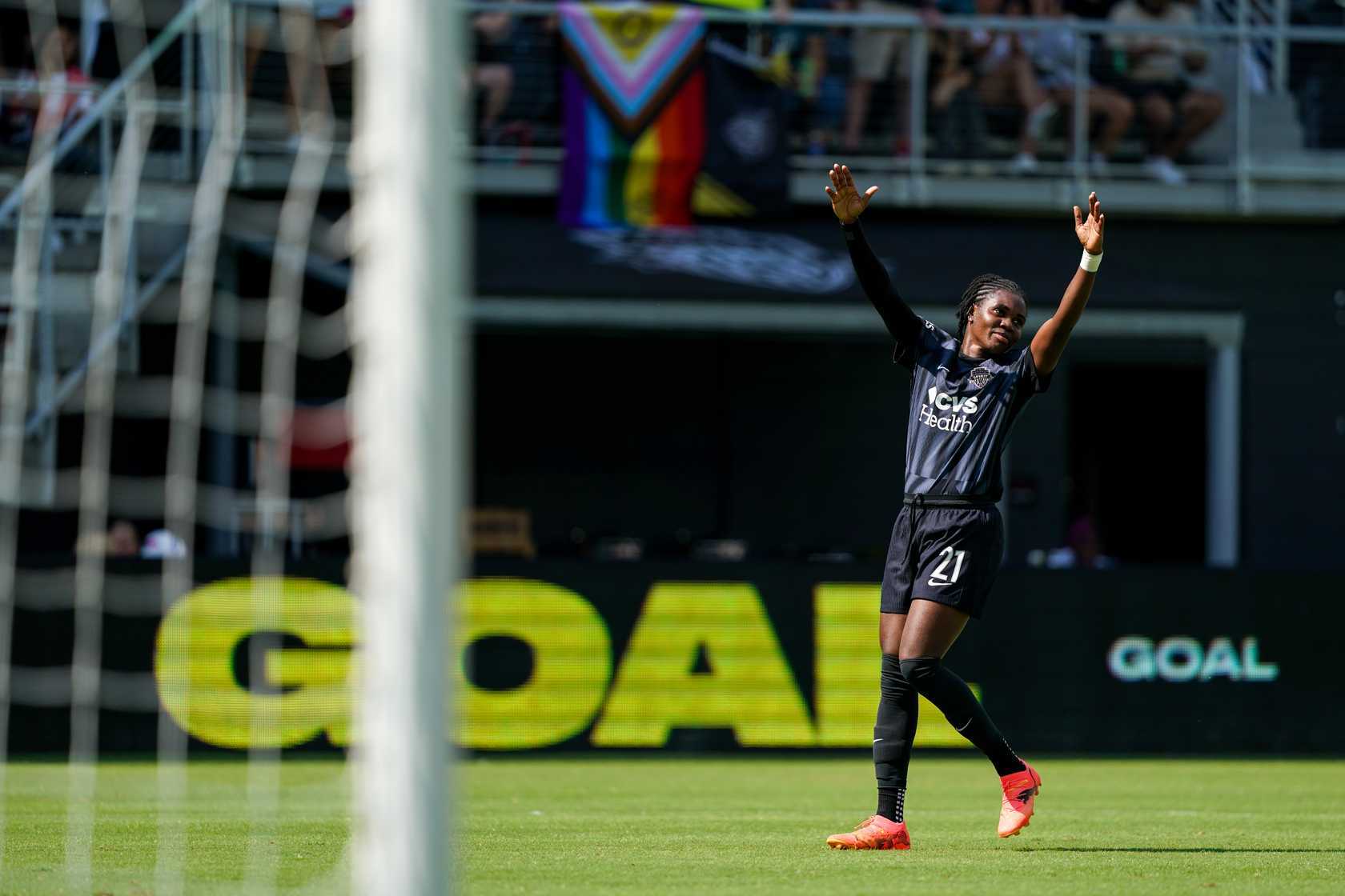 For her record-breaking three-goal performance, Monday earns her first Player of the Week award since joining the Spirit in the spring. The breakout forward scored the fastest hat trick from kickoff in league history, coming in just under 36 minutes. Monday is the eighth different Spirit player to win NWSL Player of the Week this season, the most in the NWSL. The Nigerian star is also the fourth straight Spirit player and seventh Spirit player in the past 12 match weeks to win the award.