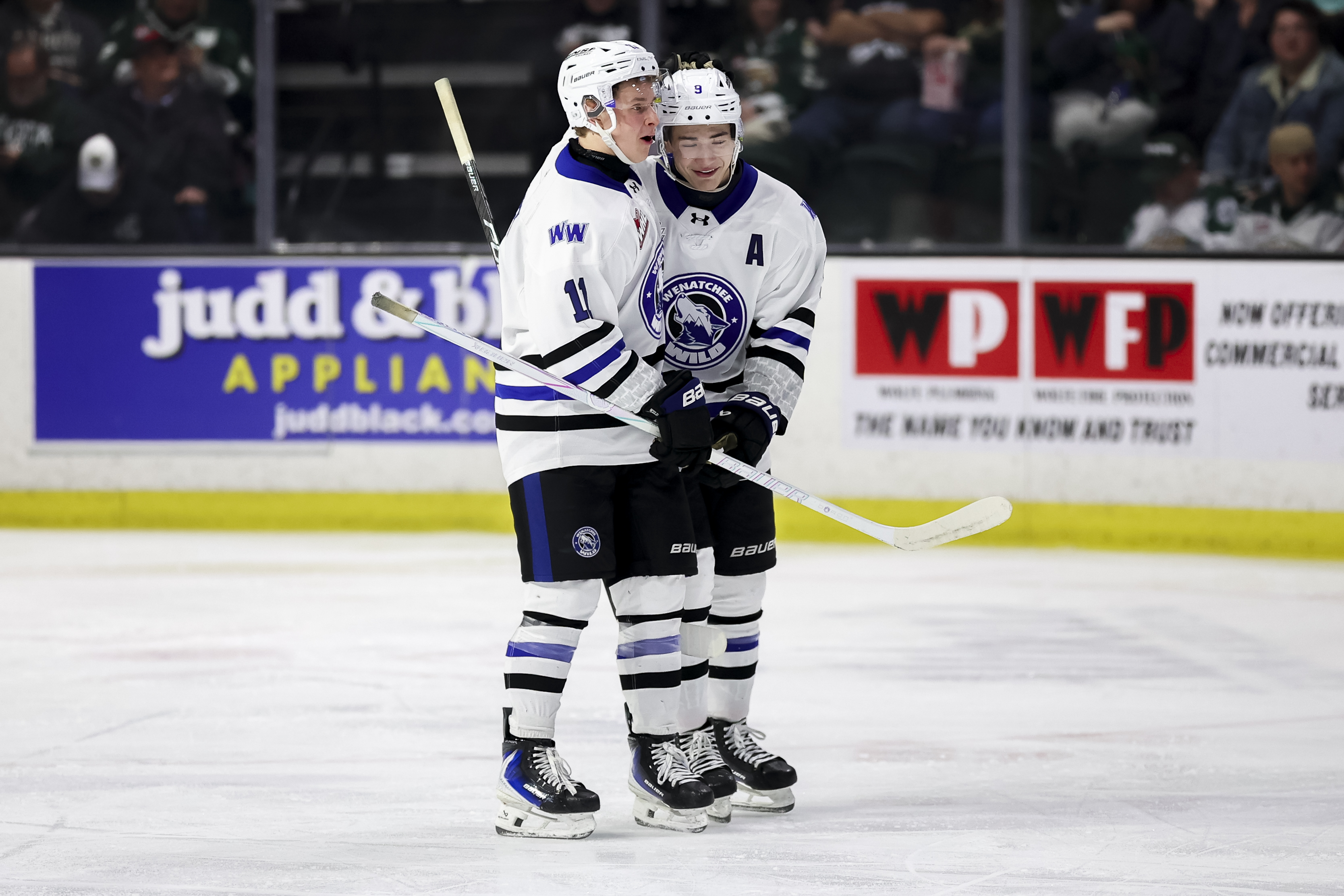 ![]() Wenatchee Wild's Mason Kraft and Aiden Grossklaus on game night (Evan Morud/Everett Silvertips) |